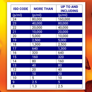 ISO Cleanliness Code is a three-digit number that is used to indicate particle contamination in oil. ISO 4406:99 is the worldwide standard for reporting contamination. Within a 1 ml sample, a laser is used to count particles of varying sizes, which are then reported in three numbers.