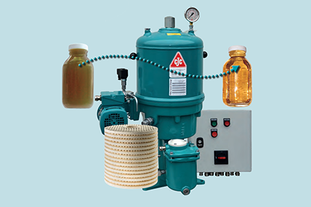 CJC® Filter Separators are offline oil filtration solutions/oil separators with an integrated circulating pump that combine fine filtration and water separation all in one device. They're made for hydraulic oil, diesel fuel, lubricating oil, and other liquids where water infiltration is a chronic or recurring issue.